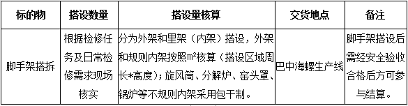 根據(jù)巴中海螺生產(chǎn)經(jīng)營需求,為保障回轉(zhuǎn)窯、水泥磨及生產(chǎn)設(shè)備實施檢修期間的施工安全、質(zhì)量和進度受控,部分區(qū)域需搭設(shè)腳手架。為確保腳手架搭設(shè)業(yè)務(wù)開展的合規(guī)性,本著公平、公正、公開、透明的原則,現(xiàn)將招標相關(guān)事宜公告如下: